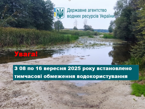 У зв'язку з маловоддям на окремих річках України Державне агентство водних ресурсів,